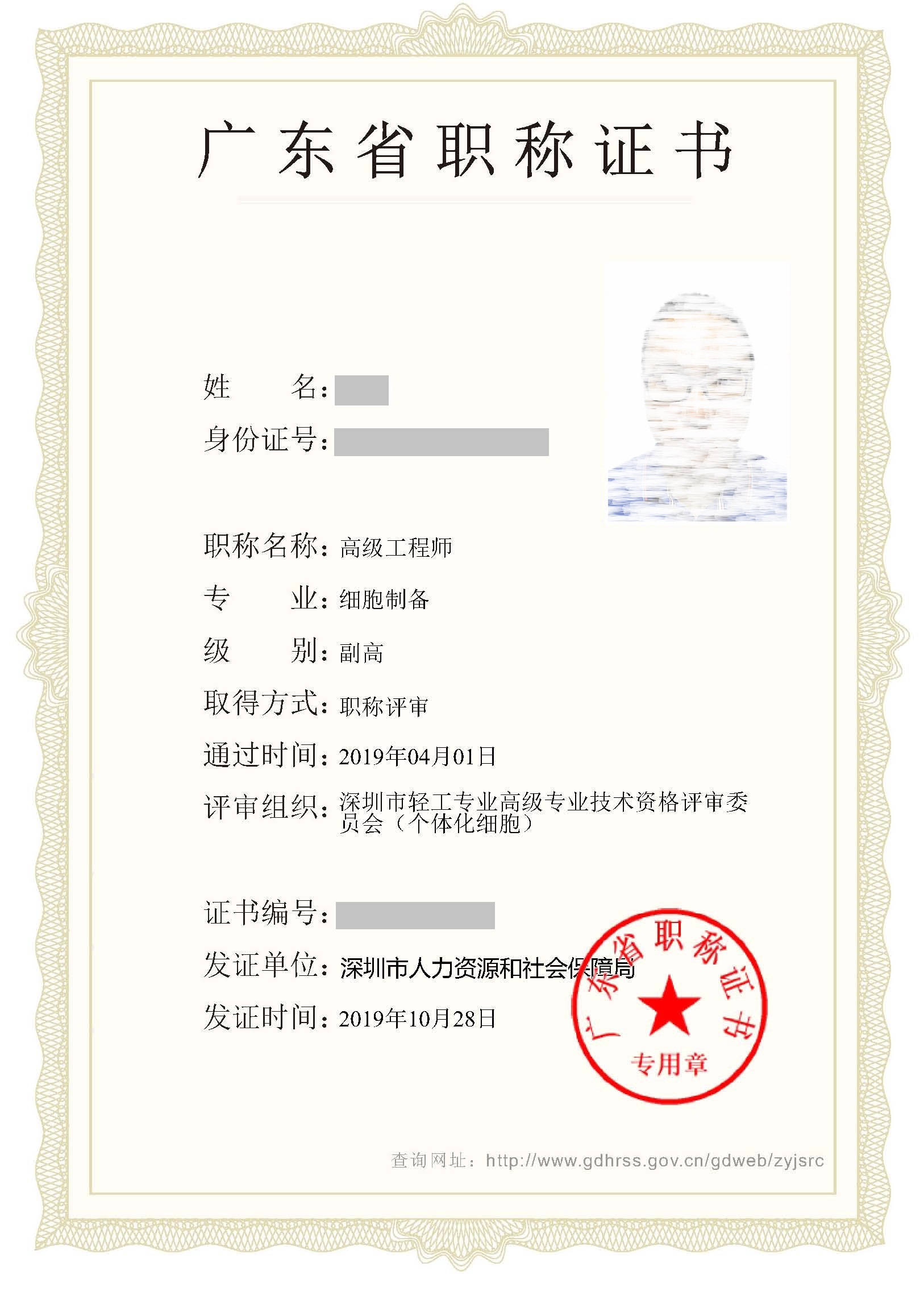 日前,細(xì)胞行業(yè)從業(yè)人員迎來了鼓舞人心的消息,由深圳市人力資源與社會保障部頒發(fā)的“細(xì)胞制備高級工程師職稱證書”和“細(xì)胞質(zhì)量管理高級工程師職稱證書”正式制證完畢,已可通過廣東政務(wù)官網(wǎng)進(jìn)行查詢。這一里程碑式的事件標(biāo)志著個體化細(xì)胞技術(shù)這一新興行業(yè)的專業(yè)技術(shù)人才,終于擁有了屬于自己的“人才戶口本”,細(xì)胞行業(yè)正式開始“執(zhí)證上崗”!