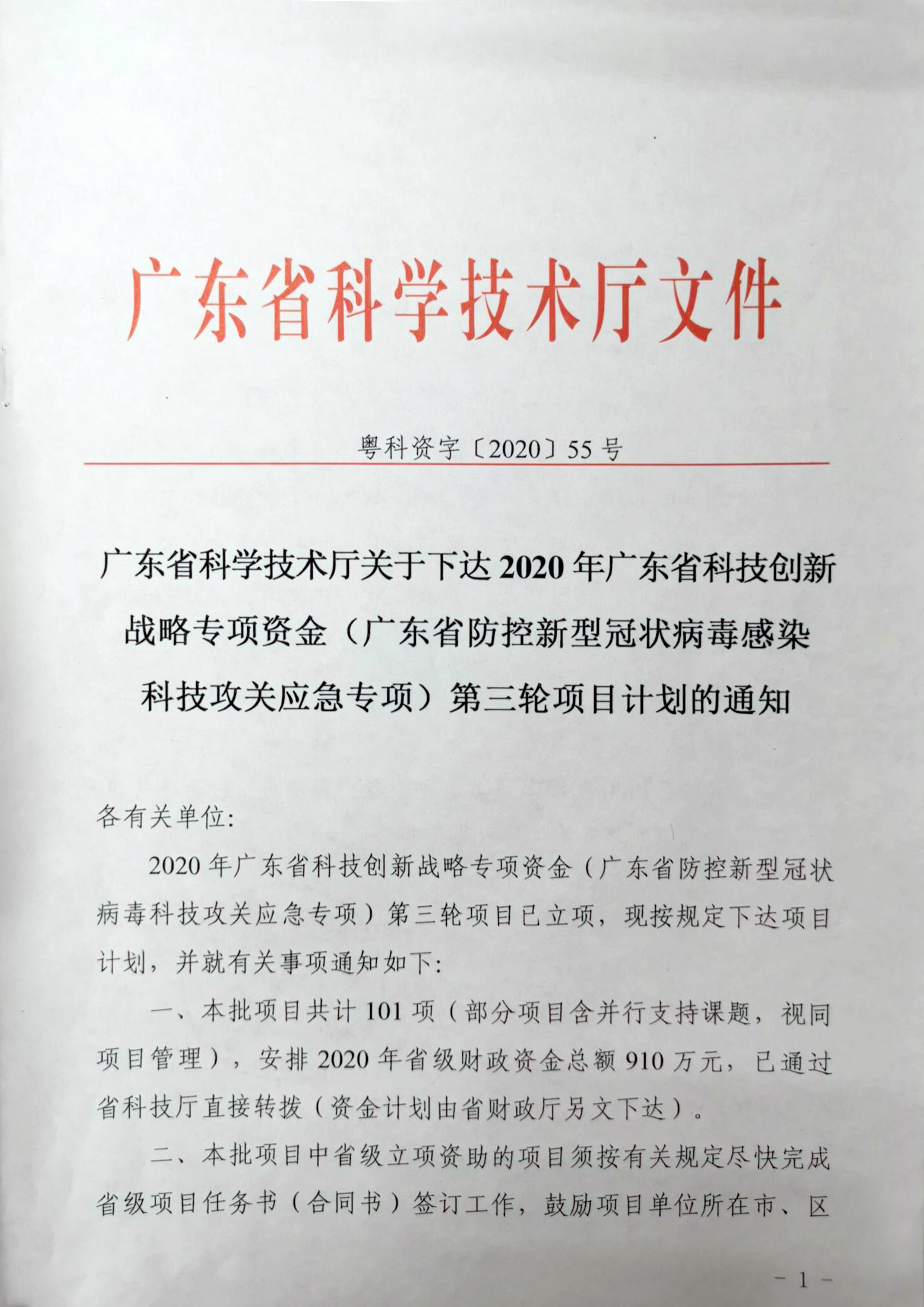 近日,廣東省科學(xué)技術(shù)廳公布了2020年廣東省科技創(chuàng)新戰(zhàn)略專(zhuān)項(xiàng)資金(廣東省防控新型冠狀病毒感染科技攻關(guān)應(yīng)急專(zhuān)項(xiàng))第三輪項(xiàng)目計(jì)劃的評(píng)審結(jié)果,三批項(xiàng)目已投入省級(jí)財(cái)政資金超3300萬(wàn)元。其中北科生物與深圳市唯一定點(diǎn)收治新冠病毒肺炎患者的深圳市第三人民醫(yī)院合作申報(bào)的《人臍帶間充質(zhì)干細(xì)胞治療冠狀病毒引起的重癥肺炎的臨床研究》項(xiàng)目,獲得廣東省科技廳2020年廣東省防控新型冠狀病毒科技攻關(guān)應(yīng)急專(zhuān)項(xiàng)立項(xiàng)。