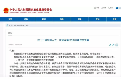 您的建議對推動我國細(xì)胞治療的發(fā)展具有重要意義,我們將認(rèn)真研究吸收,積極推進上述有關(guān)工作。